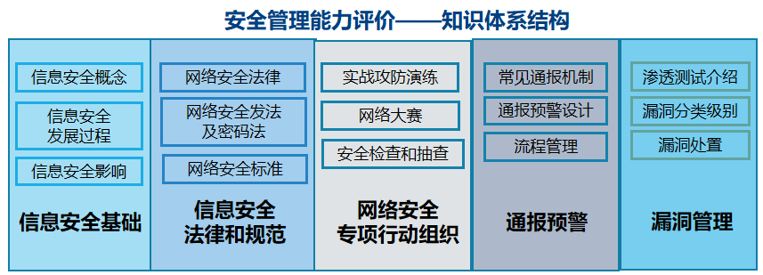 评价培训内容:包括信息安全基础、信息安全法律和规范、网络安全专项行动组织、通报预警、漏洞管理等。