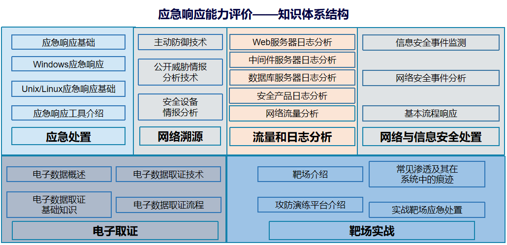 评价培训内容:主要包含应急处置、网络溯源、流量及日志分析、网络与信息安全处置、电子取证、实战靶场考核等。